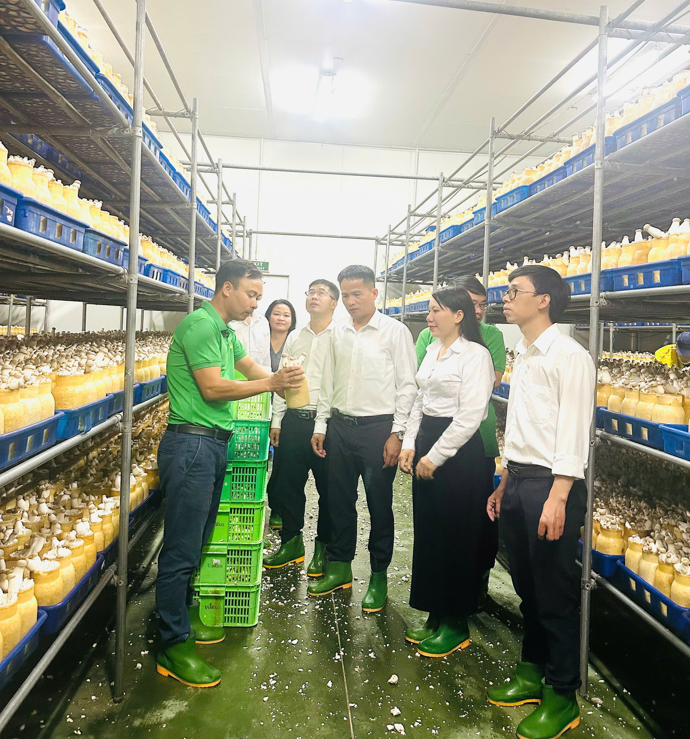 Đoàn công tác tham quan khu trồng Nấm đùi gà của Công ty