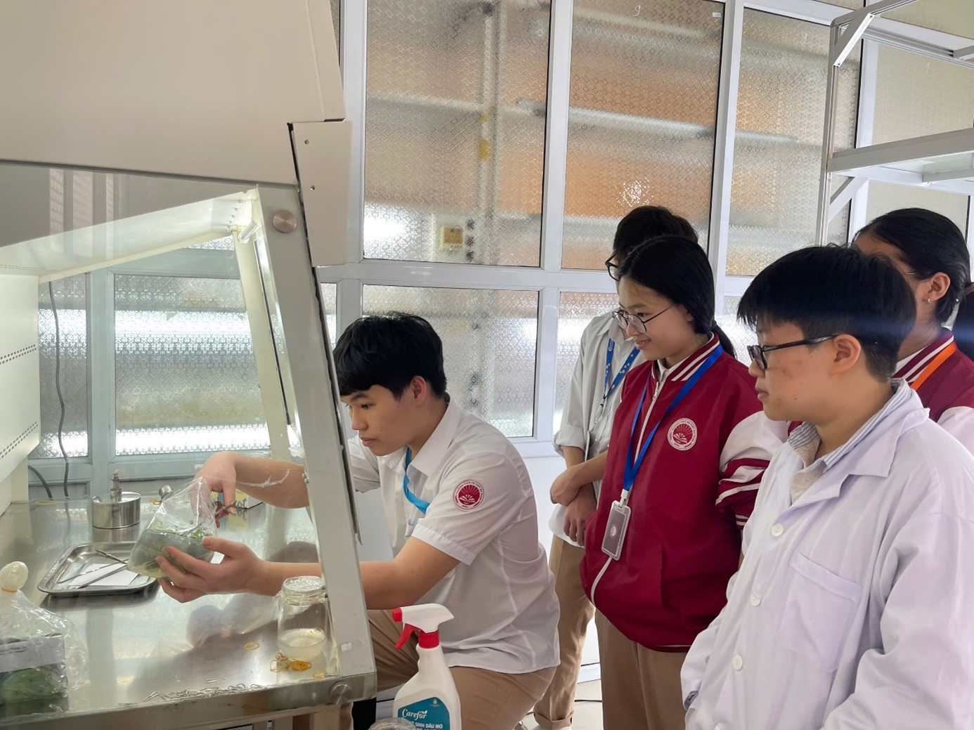 Không dừng lại ở đó, học phần còn được thiết kế với các hoạt động “mở” nhằm mở rộng trải nghiệm học tập của sinh viên. Bên cạnh việc thực hành và làm dự án, sinh viên còn có cơ hội tham gia hướng dẫn học sinh phổ thông trải nghiệm công nghệ tế bào thực vật. Khi trực tiếp đứng ở vai trò hướng dẫn, sinh viên buộc phải hiểu sâu kiến thức, biết cách diễn đạt đơn giản và xử lý các tình huống thực tế. Đây là một bước chuyển quan trọng từ “người học” sang “người có thể làm và hướng dẫn lại cho người khác”, đồng thời giúp các em rèn luyện kỹ năng giao tiếp khoa học, tổ chức hoạt động và làm việc trong môi trường thực tế.