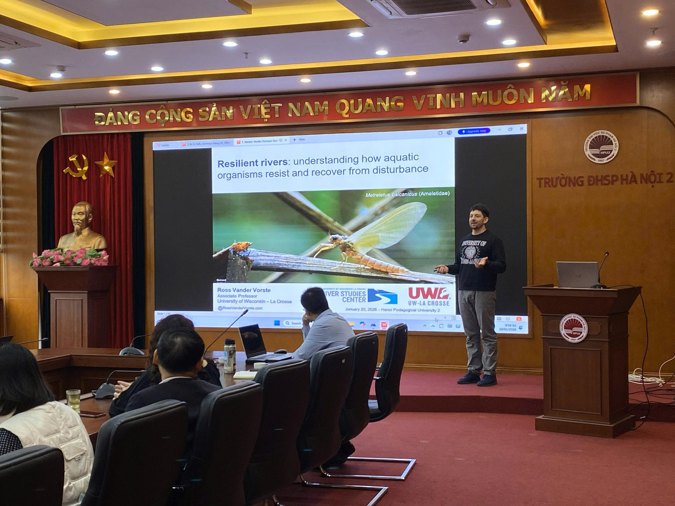 Sáng ngày 20/01/2026, tại Phòng PH2 – Nhà A1, khoa Sinh học đã tổ chức thành công seminar khoa học quốc tế với chủ đề “International Research Collaboration on Aquatic Insects”. Đây là hoạt động học thuật có ý nghĩa thiết thực trong chiến lược tăng cường kết nối nghiên cứu khoa học, đào tạo và hợp tác quốc tế, qua đó tạo môi trường học thuật để sinh viên và học viên cao học tiếp cận phương pháp nghiên cứu hiện đại và công bố khoa học.