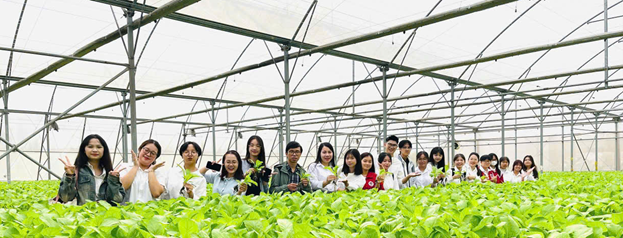 Điểm nhấn của chuyến đi là các nội dung trải nghiệm thực hành trực tiếp: sinh viên được tự tay kiểm tra độ ẩm giá thể, nhận biết sâu bệnh, vận hành hệ thống tưới tự động, và quan sát sự phát triển của cây rau thủy canh trong các giai đoạn sinh trưởng khác nhau. Không chỉ dừng ở kỹ năng, kỹ thuật, chuyến đi còn giúp sinh viên hiểu rõ hơn về mô hình vận hành doanh nghiệp nông nghiệp công nghệ cao, cách thức quản lý nhân sự, tiêu chuẩn hóa quy trình và đảm bảo truy xuất nguồn gốc sản phẩm – những yếu tố quan trọng giúp WinEco xây dựng và duy trì thương hiệu, vị thế hàng đầu trong lĩnh vực nông sản sạch tại Việt Nam.